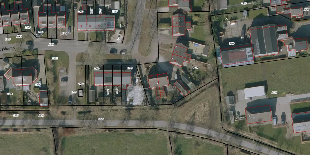Het perceel waarop Boskkamp 27 staat heeft een oppervlakte van 2200 m². Dit is een zeer groot perceel. De perceeloppervlakte wordt geregistreerd door het Kadaster. Gedetailleerde informatie over de maten van dit perceel kunt u vinden in het rapport Kadastrale kaart met maatvoering van Boskkamp 27.