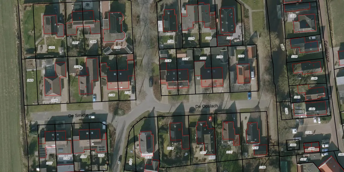 Gebruik de zoekbalk of klik op een perceel voor informatie over de adressen binnen dit perceel.