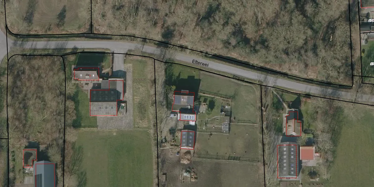 Het perceel waarop Efterwei 4 staat heeft een oppervlakte van 1,1 ha. Dit is een zeer groot perceel. De perceeloppervlakte wordt geregistreerd door het Kadaster. Gedetailleerde informatie over de maten van dit perceel kunt u vinden in het rapport Kadastrale kaart met maatvoering van Efterwei 4.