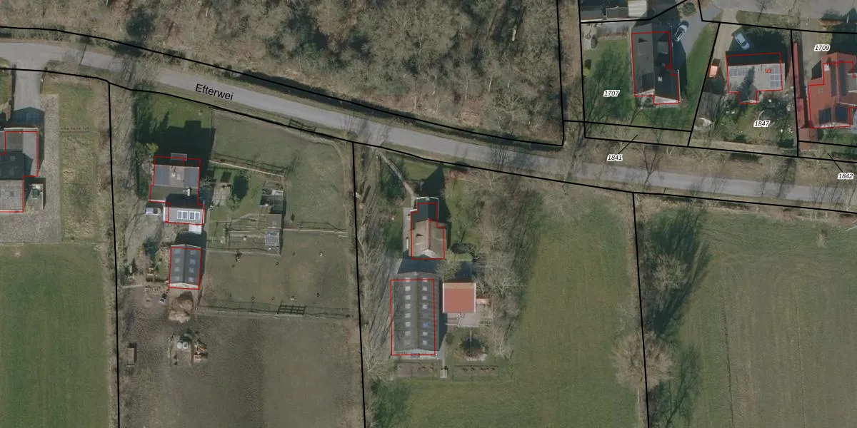 Efterwei 6 is gelegen op kadastraal perceel DGH00C1894. Deze kadastrale aanduiding is uniek en wordt gebruikt door het Kadaster om eigendomsrechten en andere zakelijke rechten vast te leggen. Het perceel maakt onderdeel uit van de kadastrale gemeente Drogeham.