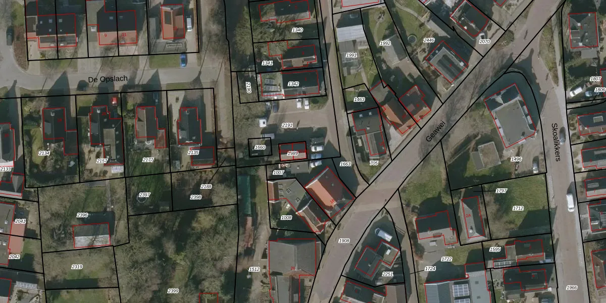 Gealeloane 1-G002 is gelegen op kadastraal perceel DGH00C1989. Deze kadastrale aanduiding is uniek en wordt gebruikt door het Kadaster om eigendomsrechten en andere zakelijke rechten vast te leggen. Het perceel maakt onderdeel uit van de kadastrale gemeente Drogeham.