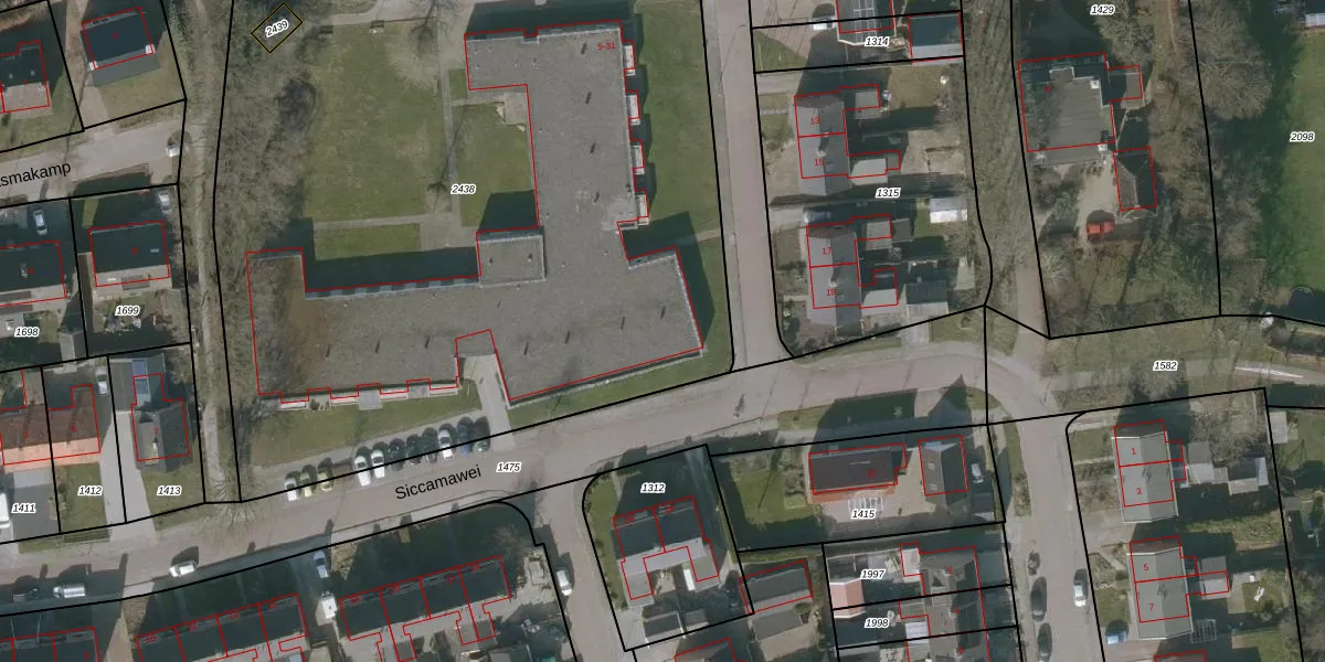 Siccamawei 23 is gelegen op kadastraal perceel DGH00C2438. Deze kadastrale aanduiding is uniek en wordt gebruikt door het Kadaster om eigendomsrechten en andere zakelijke rechten vast te leggen. Het perceel maakt onderdeel uit van de kadastrale gemeente Drogeham.