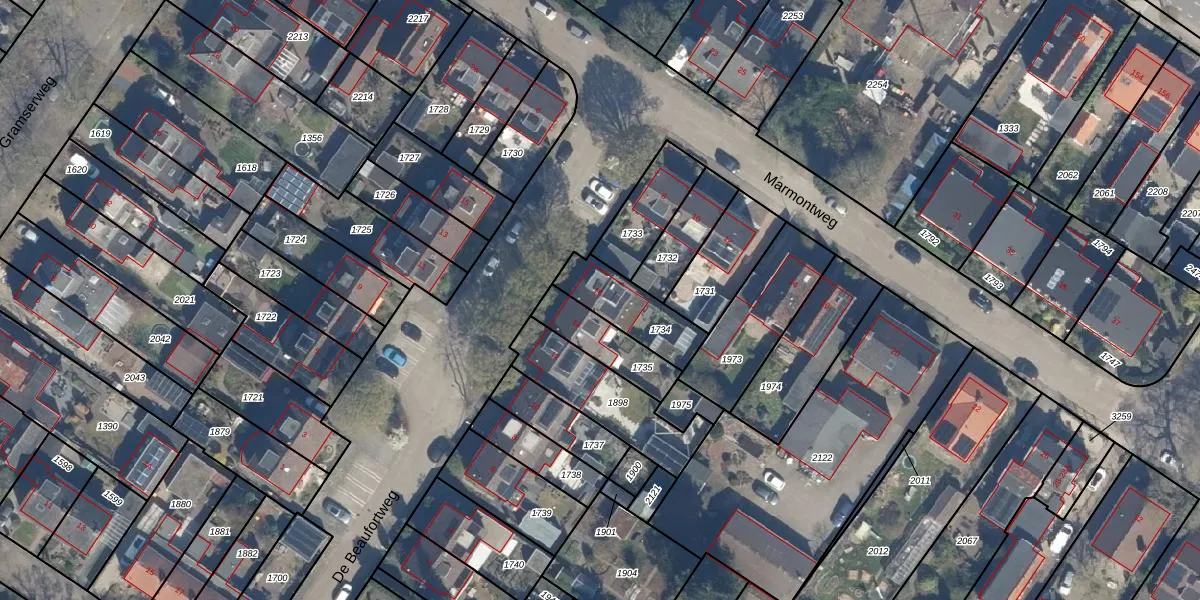 Het perceel waarop De Beaufortweg 16 staat heeft een oppervlakte van 197 m². Dit is een middelgroot perceel. De perceeloppervlakte wordt geregistreerd door het Kadaster. Gedetailleerde informatie over de maten van dit perceel kunt u vinden in het rapport Kadastrale kaart met maatvoering van De Beaufortweg 16.