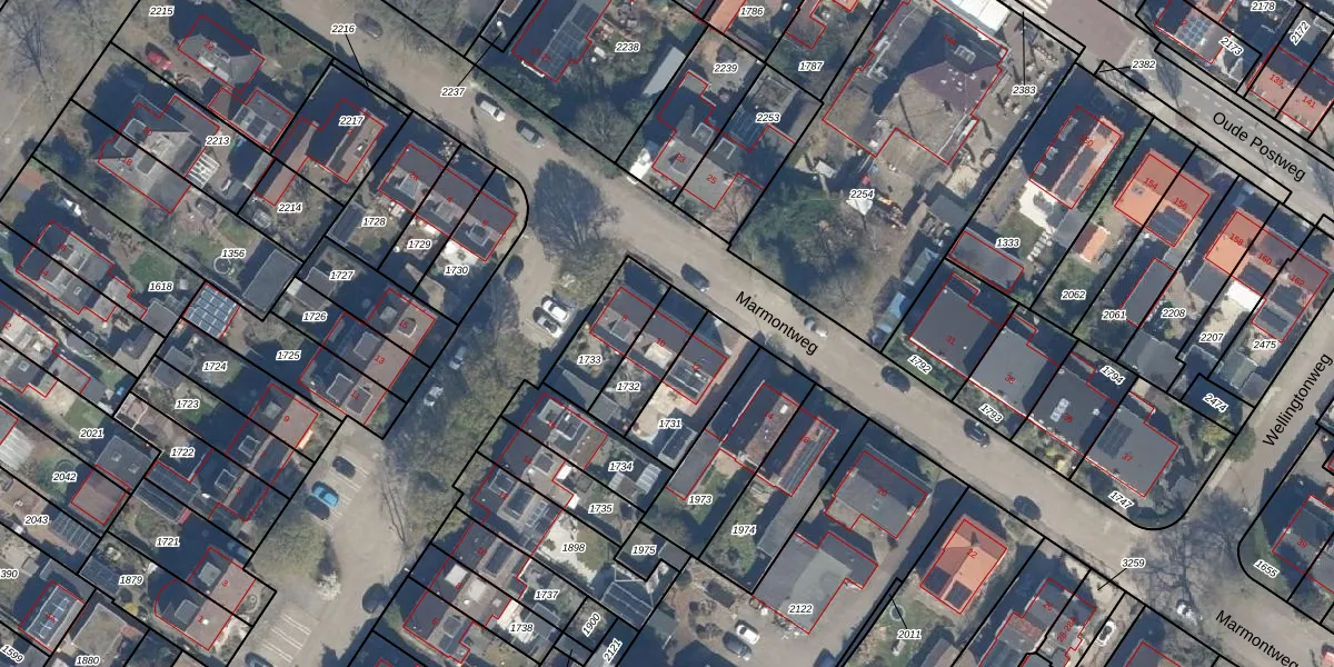 Gebruik de zoekbalk of klik op een perceel voor informatie over de adressen binnen dit perceel.