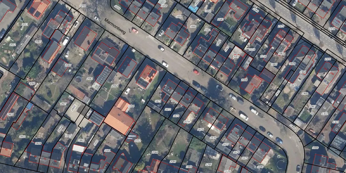 Het perceel waarop Marmontweg 44 staat heeft een oppervlakte van 197 m². Dit is een middelgroot perceel. De perceeloppervlakte wordt geregistreerd door het Kadaster. Gedetailleerde informatie over de maten van dit perceel kunt u vinden in het rapport Kadastrale kaart met maatvoering van Marmontweg 44.