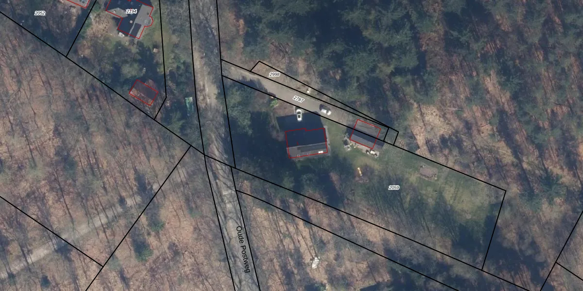 Het perceel waarop Oude Postweg 1 staat heeft een oppervlakte van 2600 m². Dit is een zeer groot perceel. De perceeloppervlakte wordt geregistreerd door het Kadaster. Gedetailleerde informatie over de maten van dit perceel kunt u vinden in het rapport Kadastrale kaart met maatvoering van Oude Postweg 1.