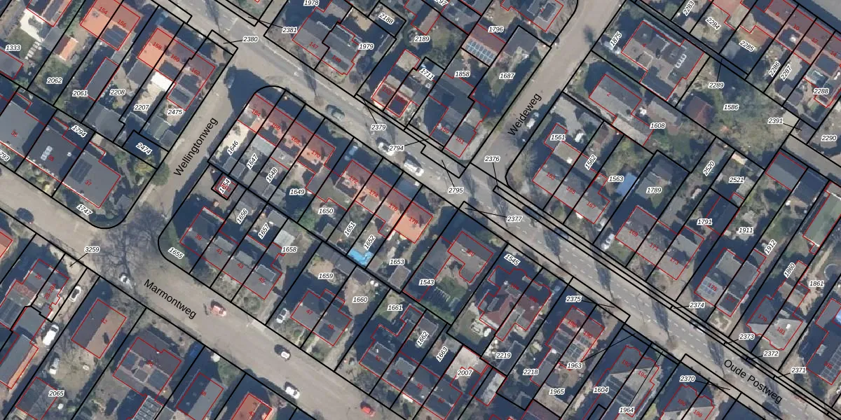 Gebruik de zoekbalk of klik op een perceel voor informatie over de adressen binnen dit perceel.