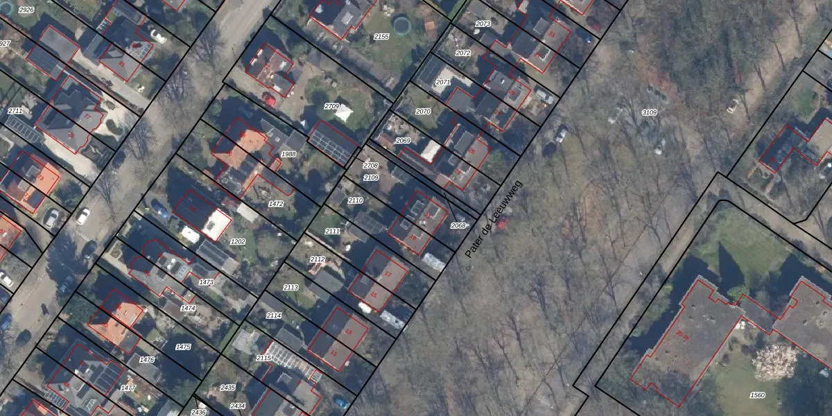 Pater de Leeuwweg 21 is gelegen op kadastraal perceel ZEI00D2109. Deze kadastrale aanduiding is uniek en wordt gebruikt door het Kadaster om eigendomsrechten en andere zakelijke rechten vast te leggen. Het perceel maakt onderdeel uit van de kadastrale gemeente Zeist.