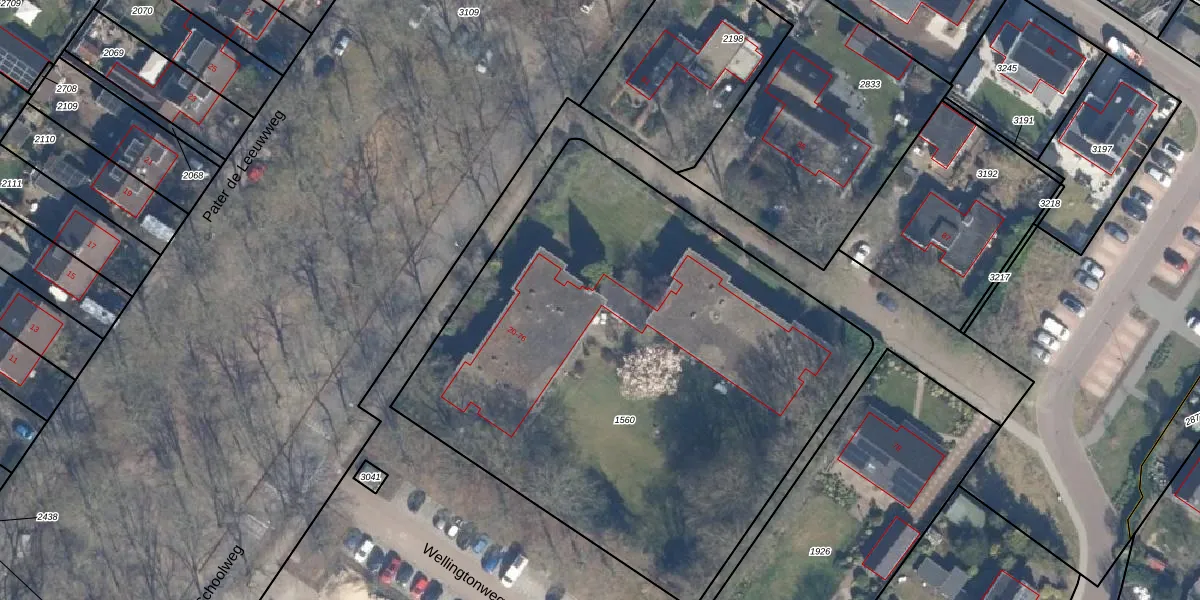 Het perceel waarop Schoolweg 40 staat heeft een oppervlakte van 3295 m². Dit is een zeer groot perceel. De perceeloppervlakte wordt geregistreerd door het Kadaster. Gedetailleerde informatie over de maten van dit perceel kunt u vinden in het rapport Kadastrale kaart met maatvoering van Schoolweg 40.