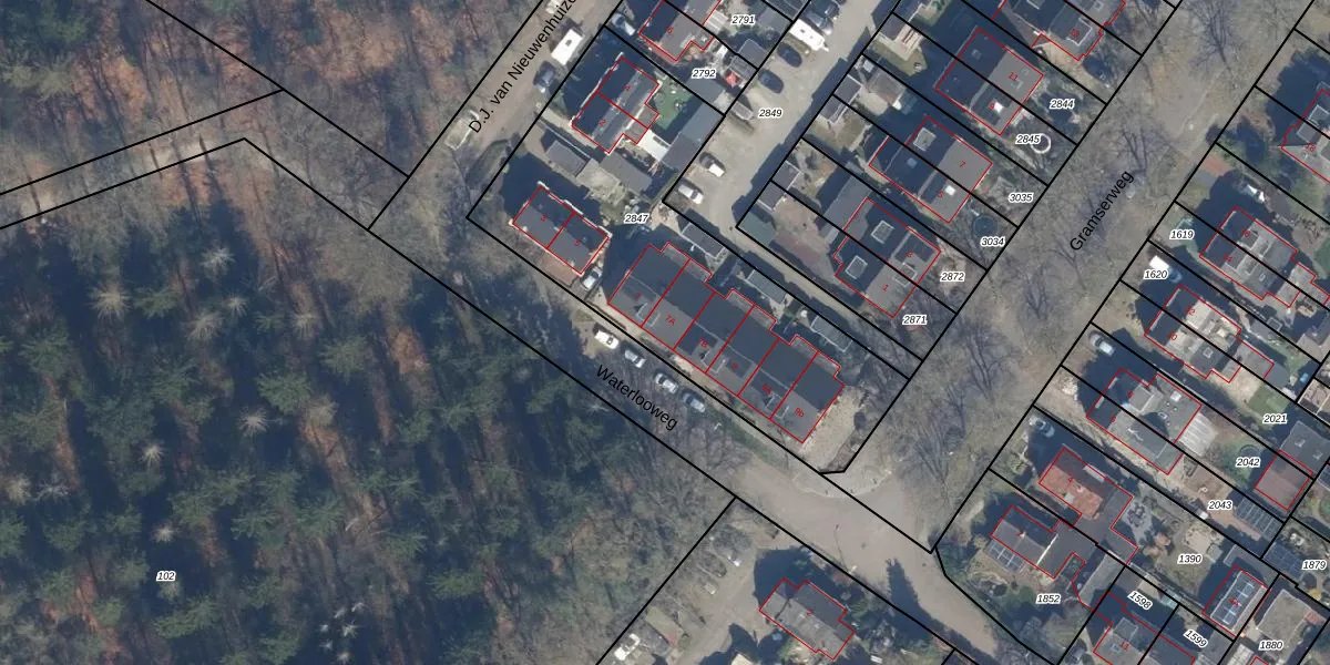 Waterlooweg 7-A is gelegen op kadastraal perceel ZEI00D2847. Deze kadastrale aanduiding is uniek en wordt gebruikt door het Kadaster om eigendomsrechten en andere zakelijke rechten vast te leggen. Het perceel maakt onderdeel uit van de kadastrale gemeente Zeist.