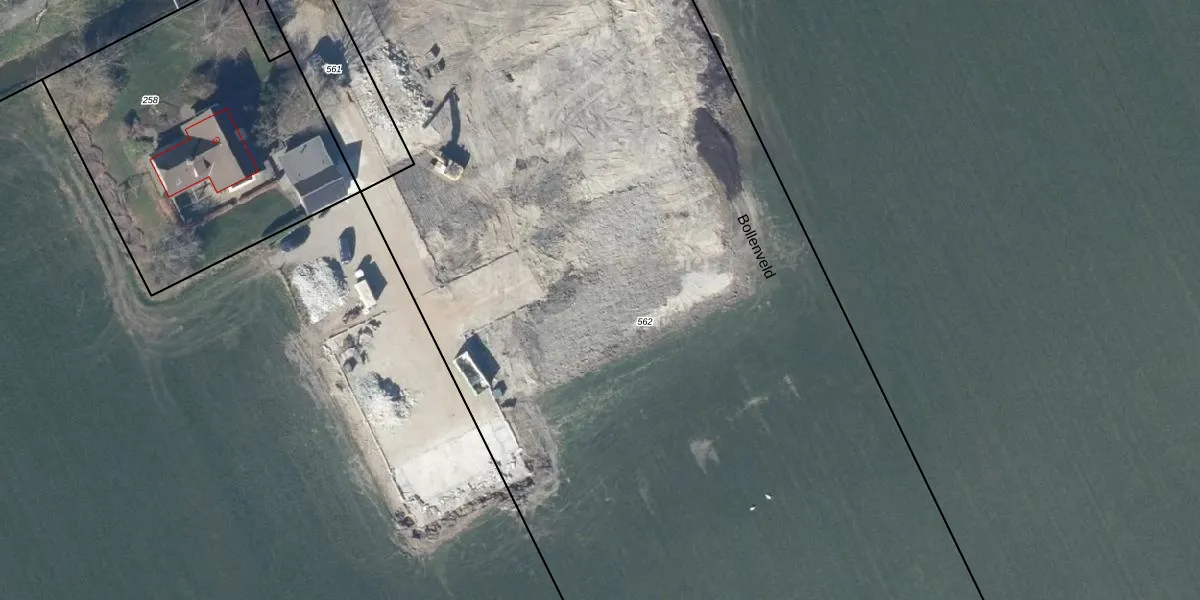 Het perceel waarop Bollenveld 4 staat heeft een oppervlakte van 9593 m². Dit is een zeer groot perceel. De perceeloppervlakte wordt geregistreerd door het Kadaster. Gedetailleerde informatie over de maten van dit perceel kunt u vinden in het rapport Kadastrale kaart met maatvoering van Bollenveld 4.