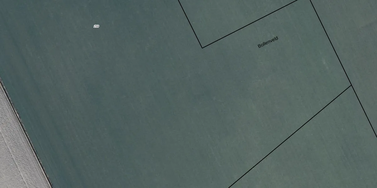 Het perceel waarop Bollenveld 56 staat heeft een oppervlakte van 2,7 ha. Dit is een zeer groot perceel. De perceeloppervlakte wordt geregistreerd door het Kadaster. Gedetailleerde informatie over de maten van dit perceel kunt u vinden in het rapport Kadastrale kaart met maatvoering van Bollenveld 56.