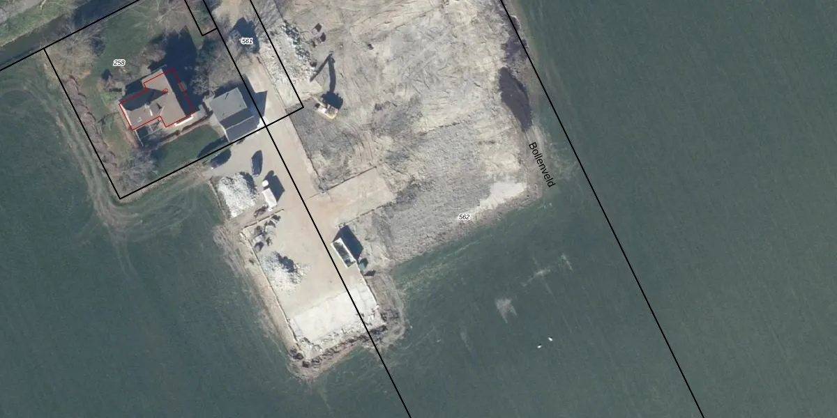 Het perceel waarop Bollenveld 6 staat heeft een oppervlakte van 9593 m². Dit is een zeer groot perceel. De perceeloppervlakte wordt geregistreerd door het Kadaster. Gedetailleerde informatie over de maten van dit perceel kunt u vinden in het rapport Kadastrale kaart met maatvoering van Bollenveld 6.
