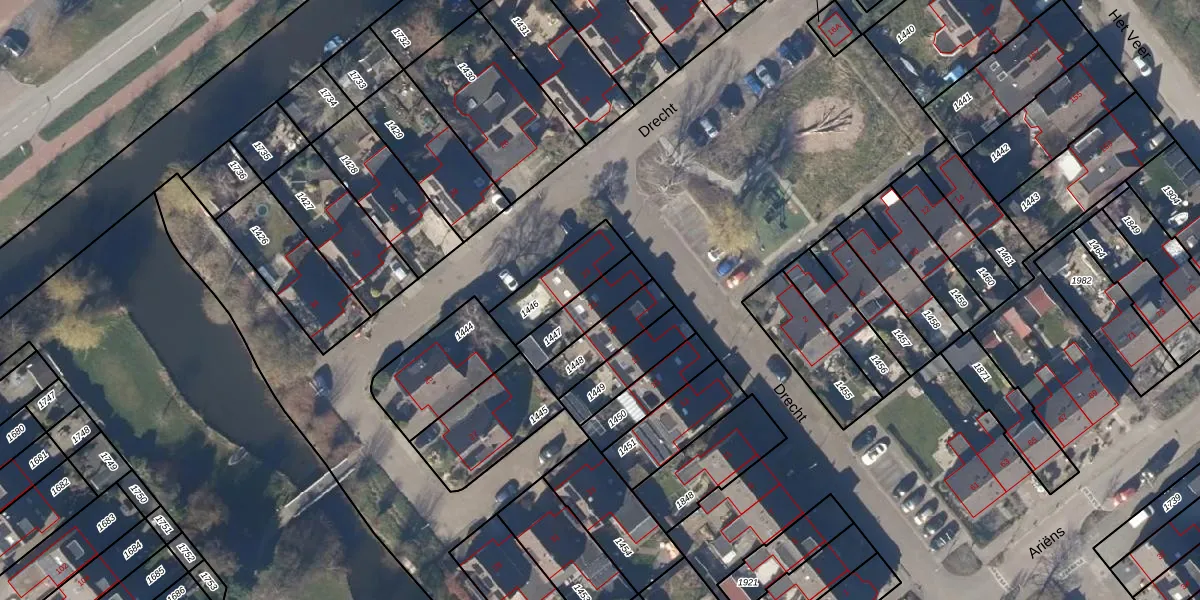 Het perceel waarop Drecht 21 staat heeft een oppervlakte van 145 m². Dit is een middelgroot perceel. De perceeloppervlakte wordt geregistreerd door het Kadaster. Gedetailleerde informatie over de maten van dit perceel kunt u vinden in het rapport Kadastrale kaart met maatvoering van Drecht 21.