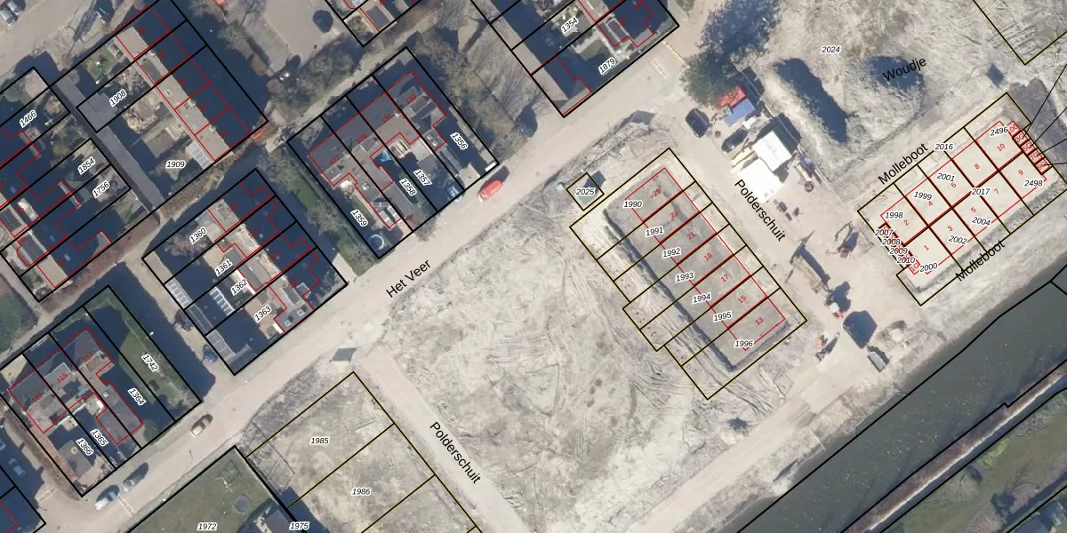 Het perceel waarop Het Veer 88 staat heeft een oppervlakte van 4,4 ha. Dit is een zeer groot perceel. De perceeloppervlakte wordt geregistreerd door het Kadaster. Gedetailleerde informatie over de maten van dit perceel kunt u vinden in het rapport Kadastrale kaart met maatvoering van Het Veer 88.