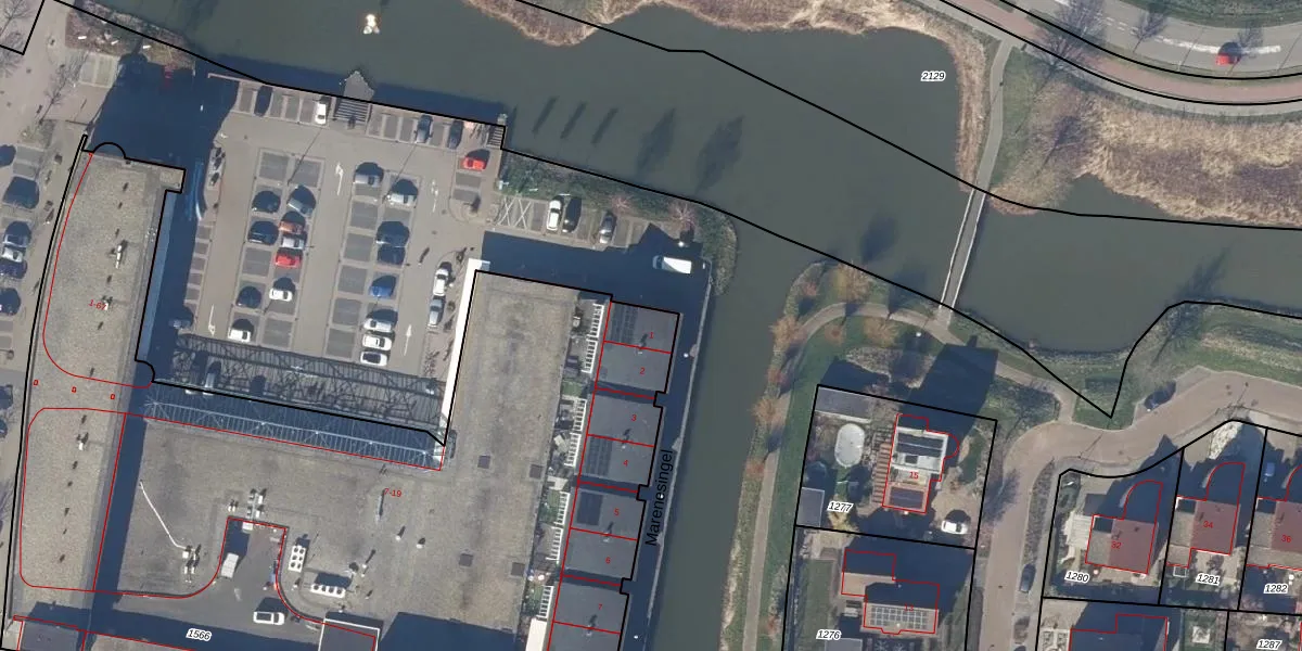 Het perceel waarop Marenesingel 1 staat heeft een oppervlakte van 5296 m². Dit is een zeer groot perceel. De perceeloppervlakte wordt geregistreerd door het Kadaster. Gedetailleerde informatie over de maten van dit perceel kunt u vinden in het rapport Kadastrale kaart met maatvoering van Marenesingel 1.