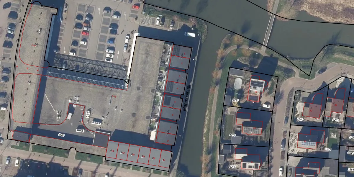 Het perceel waarop Marenesingel 4 staat heeft een oppervlakte van 5296 m². Dit is een zeer groot perceel. De perceeloppervlakte wordt geregistreerd door het Kadaster. Gedetailleerde informatie over de maten van dit perceel kunt u vinden in het rapport Kadastrale kaart met maatvoering van Marenesingel 4.