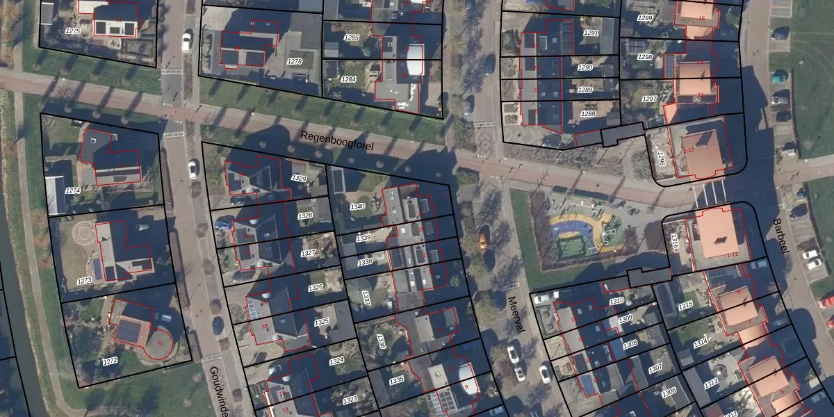 Het perceel waarop Meerval 21 staat heeft een oppervlakte van 352 m². Dit is een groot perceel. De perceeloppervlakte wordt geregistreerd door het Kadaster. Gedetailleerde informatie over de maten van dit perceel kunt u vinden in het rapport Kadastrale kaart met maatvoering van Meerval 21.