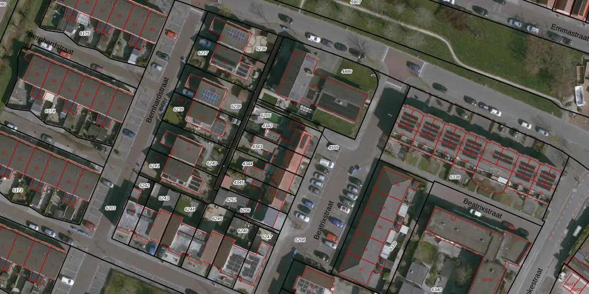 Het perceel waarop Beatrixstraat 41 staat heeft een oppervlakte van 243 m². Dit is een middelgroot perceel. De perceeloppervlakte wordt geregistreerd door het Kadaster. Gedetailleerde informatie over de maten van dit perceel kunt u vinden in het rapport Kadastrale kaart met maatvoering van Beatrixstraat 41.