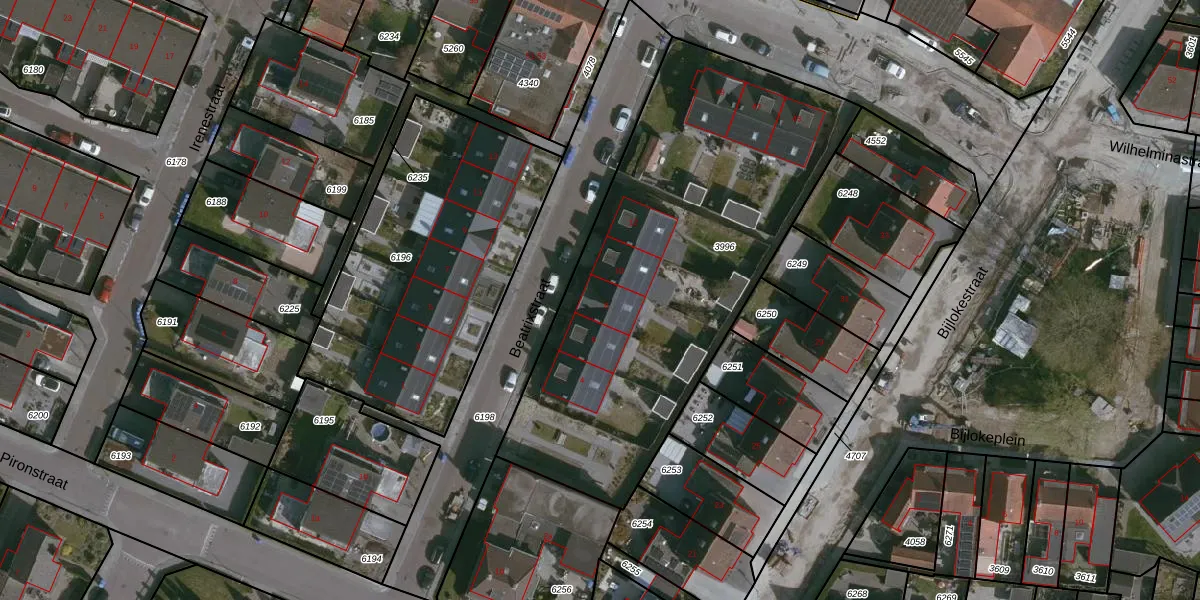 Het perceel waarop Beatrixstraat 8 staat heeft een oppervlakte van 2158 m². Dit is een zeer groot perceel. De perceeloppervlakte wordt geregistreerd door het Kadaster. Gedetailleerde informatie over de maten van dit perceel kunt u vinden in het rapport Kadastrale kaart met maatvoering van Beatrixstraat 8.