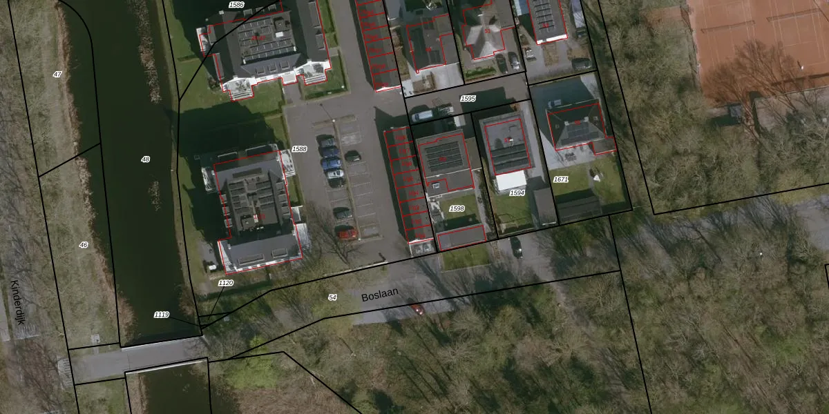 Het perceel waarop Boslaan 1-g3 staat heeft een oppervlakte van 3754 m². Dit is een zeer groot perceel. De perceeloppervlakte wordt geregistreerd door het Kadaster. Gedetailleerde informatie over de maten van dit perceel kunt u vinden in het rapport Kadastrale kaart met maatvoering van Boslaan 1-g3.