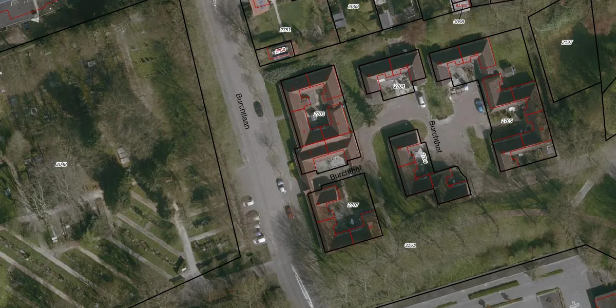 Het perceel waarop Burchthof 5 staat heeft een oppervlakte van 591 m². Dit is een groot perceel. De perceeloppervlakte wordt geregistreerd door het Kadaster. Gedetailleerde informatie over de maten van dit perceel kunt u vinden in het rapport Kadastrale kaart met maatvoering van Burchthof 5.