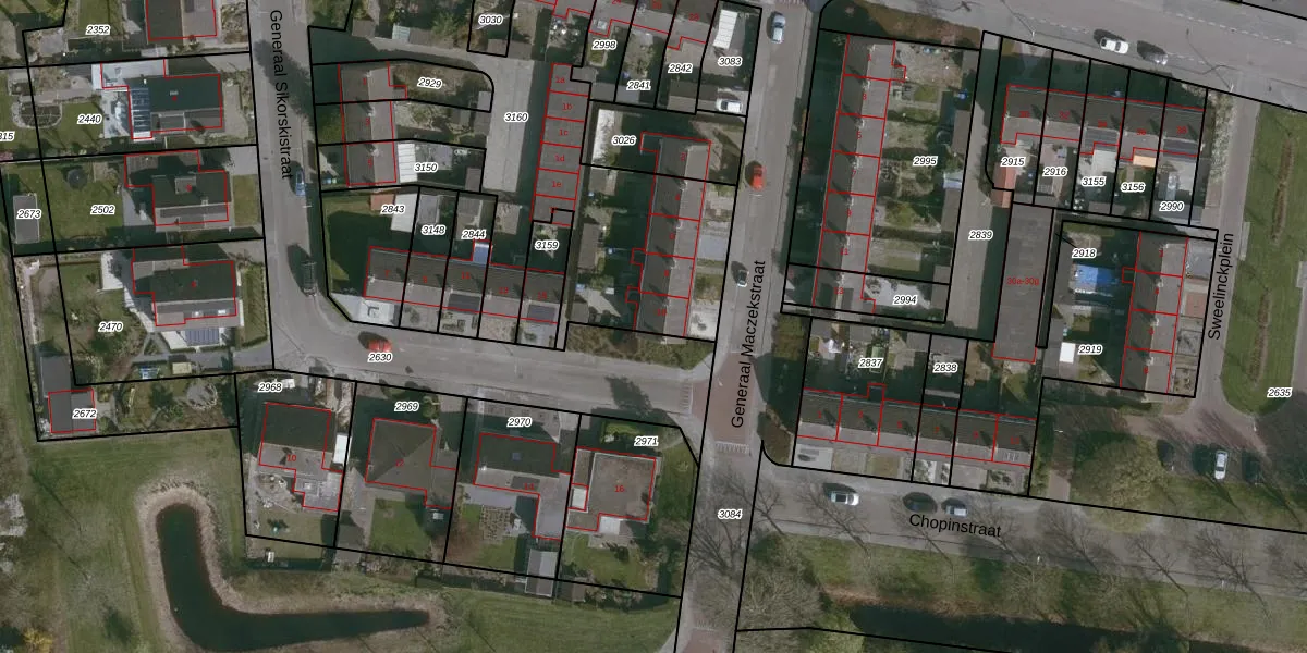 Het perceel waarop Generaal Maczekstraat 10 staat heeft een oppervlakte van 1989 m². Dit is een zeer groot perceel. De perceeloppervlakte wordt geregistreerd door het Kadaster. Gedetailleerde informatie over de maten van dit perceel kunt u vinden in het rapport Kadastrale kaart met maatvoering van Generaal Maczekstraat 10.