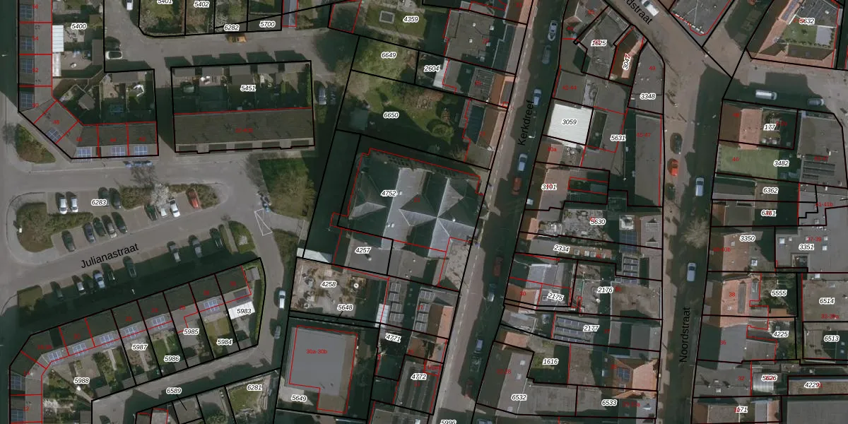 Gebruik de zoekbalk of klik op een perceel voor informatie over de adressen binnen dit perceel.