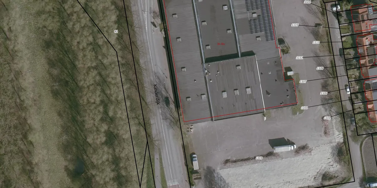 Het perceel waarop Kinderdijk 35-a staat heeft een oppervlakte van 1,1 ha. Dit is een zeer groot perceel. De perceeloppervlakte wordt geregistreerd door het Kadaster. Gedetailleerde informatie over de maten van dit perceel kunt u vinden in het rapport Kadastrale kaart met maatvoering van Kinderdijk 35-a.