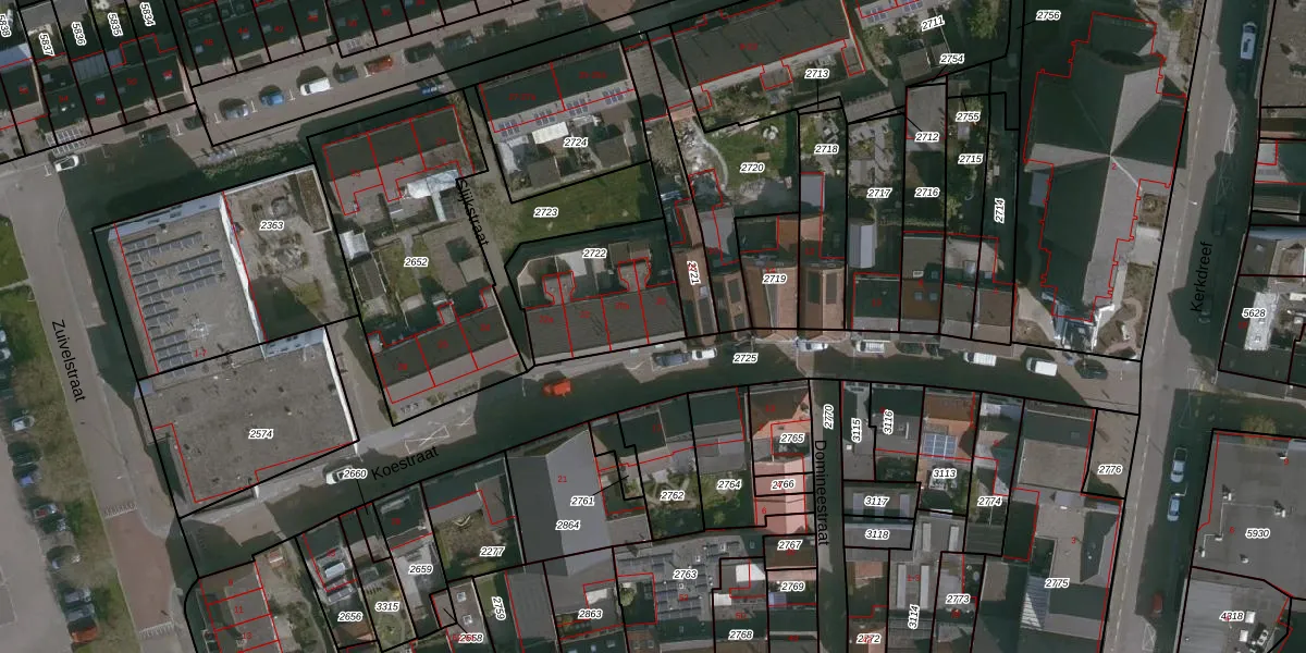 Het perceel waarop Koestraat 20 staat heeft een oppervlakte van 454 m². Dit is een groot perceel. De perceeloppervlakte wordt geregistreerd door het Kadaster. Gedetailleerde informatie over de maten van dit perceel kunt u vinden in het rapport Kadastrale kaart met maatvoering van Koestraat 20.
