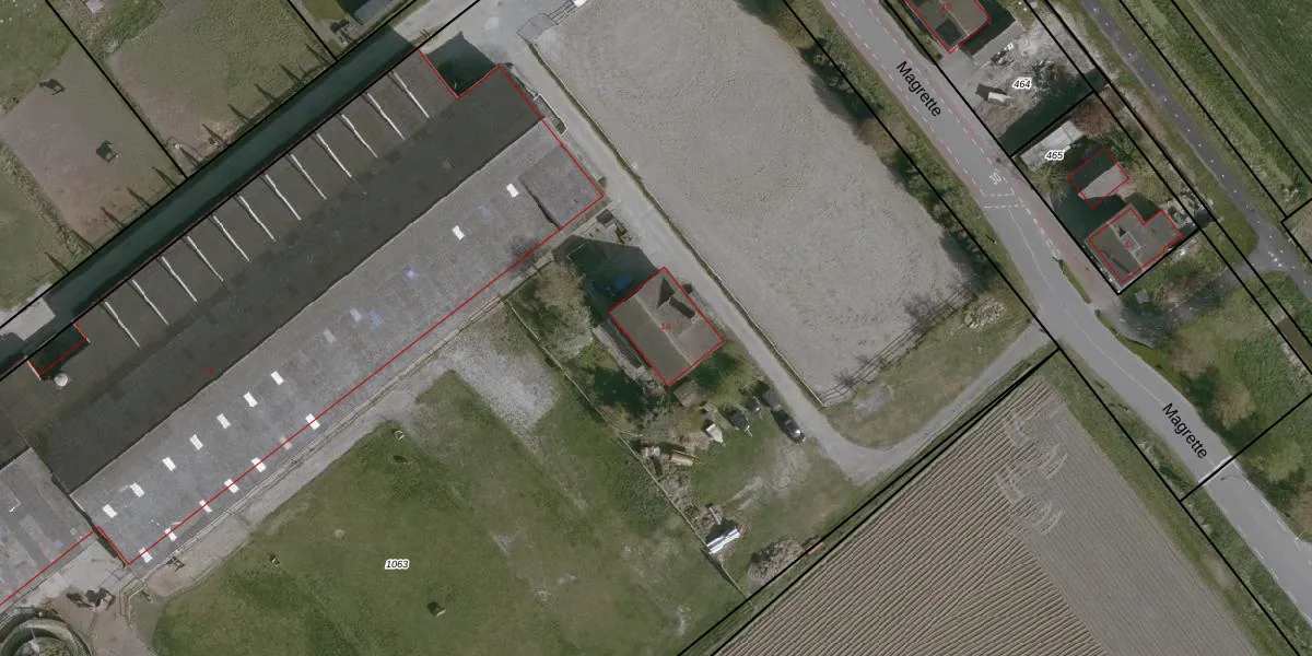 Het perceel waarop Magrette 1-a staat heeft een oppervlakte van 1,7 ha. Dit is een zeer groot perceel. De perceeloppervlakte wordt geregistreerd door het Kadaster. Gedetailleerde informatie over de maten van dit perceel kunt u vinden in het rapport Kadastrale kaart met maatvoering van Magrette 1-a.