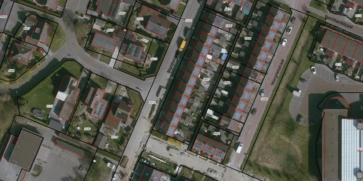 Het perceel waarop Marijkestraat 36 staat heeft een oppervlakte van 1465 m². Dit is een zeer groot perceel. De perceeloppervlakte wordt geregistreerd door het Kadaster. Gedetailleerde informatie over de maten van dit perceel kunt u vinden in het rapport Kadastrale kaart met maatvoering van Marijkestraat 36.