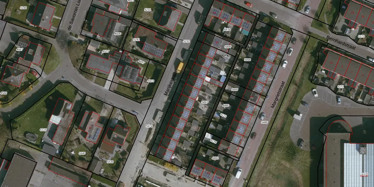 Het perceel waarop Marijkestraat 40 staat heeft een oppervlakte van 1465 m². Dit is een zeer groot perceel. De perceeloppervlakte wordt geregistreerd door het Kadaster. Gedetailleerde informatie over de maten van dit perceel kunt u vinden in het rapport Kadastrale kaart met maatvoering van Marijkestraat 40.