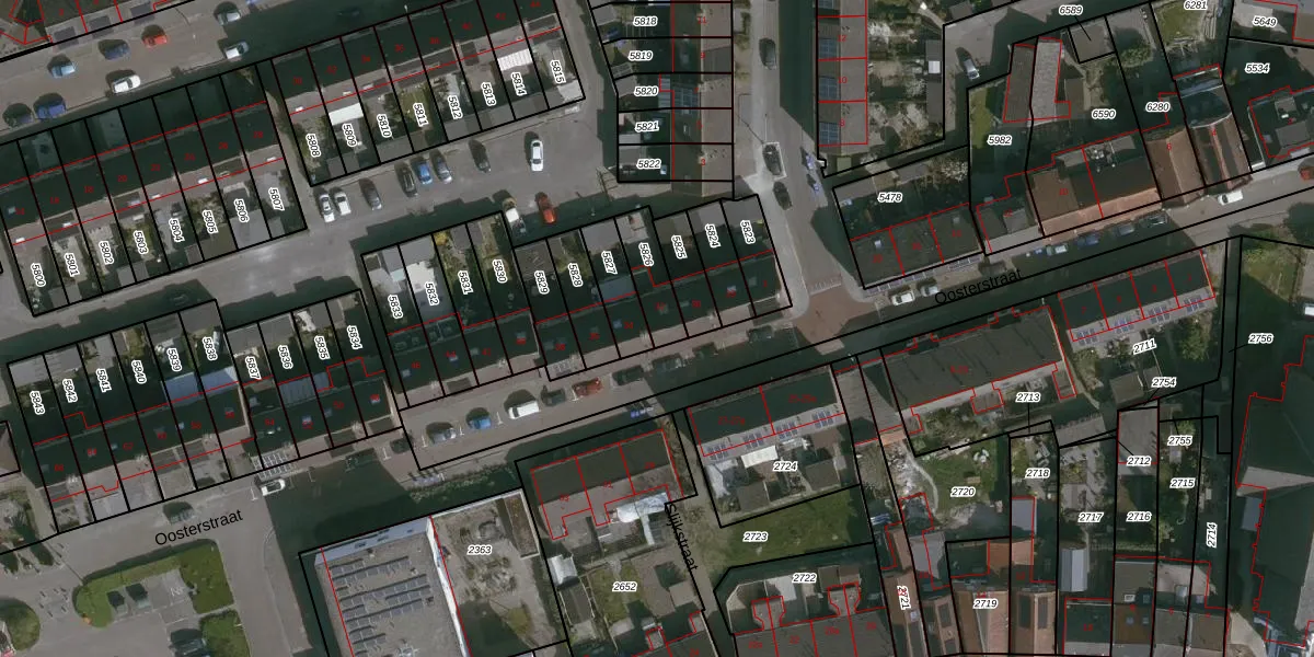 Gebruik de zoekbalk of klik op een perceel voor informatie over de adressen binnen dit perceel.