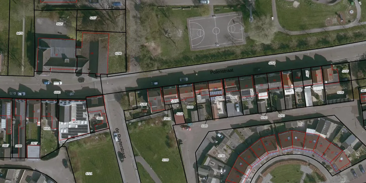 Het perceel waarop Polenstraat 12 staat heeft een oppervlakte van 174 m². Dit is een middelgroot perceel. De perceeloppervlakte wordt geregistreerd door het Kadaster. Gedetailleerde informatie over de maten van dit perceel kunt u vinden in het rapport Kadastrale kaart met maatvoering van Polenstraat 12.