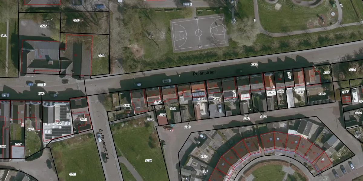 Het perceel waarop Polenstraat 14 staat heeft een oppervlakte van 154 m². Dit is een middelgroot perceel. De perceeloppervlakte wordt geregistreerd door het Kadaster. Gedetailleerde informatie over de maten van dit perceel kunt u vinden in het rapport Kadastrale kaart met maatvoering van Polenstraat 14.