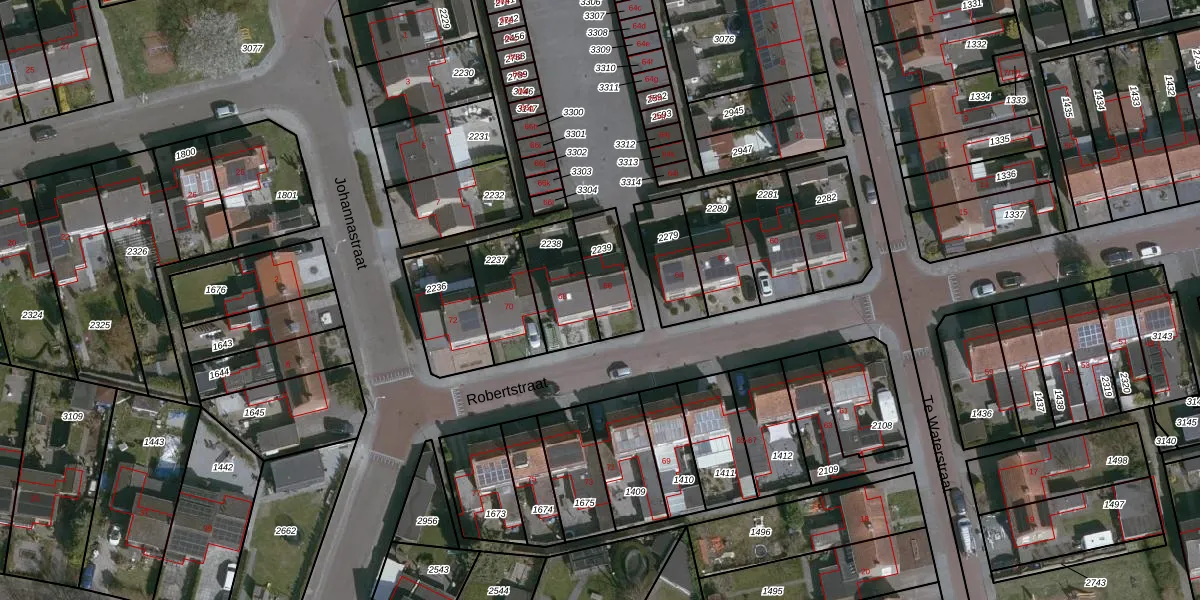 Gebruik de zoekbalk of klik op een perceel voor informatie over de adressen binnen dit perceel.