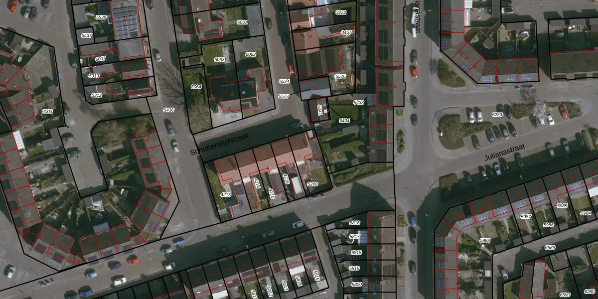 Schuttershofstraat 1 is gelegen op kadastraal perceel AEL00G5208. Deze kadastrale aanduiding is uniek en wordt gebruikt door het Kadaster om eigendomsrechten en andere zakelijke rechten vast te leggen. Het perceel maakt onderdeel uit van de kadastrale gemeente Axel.