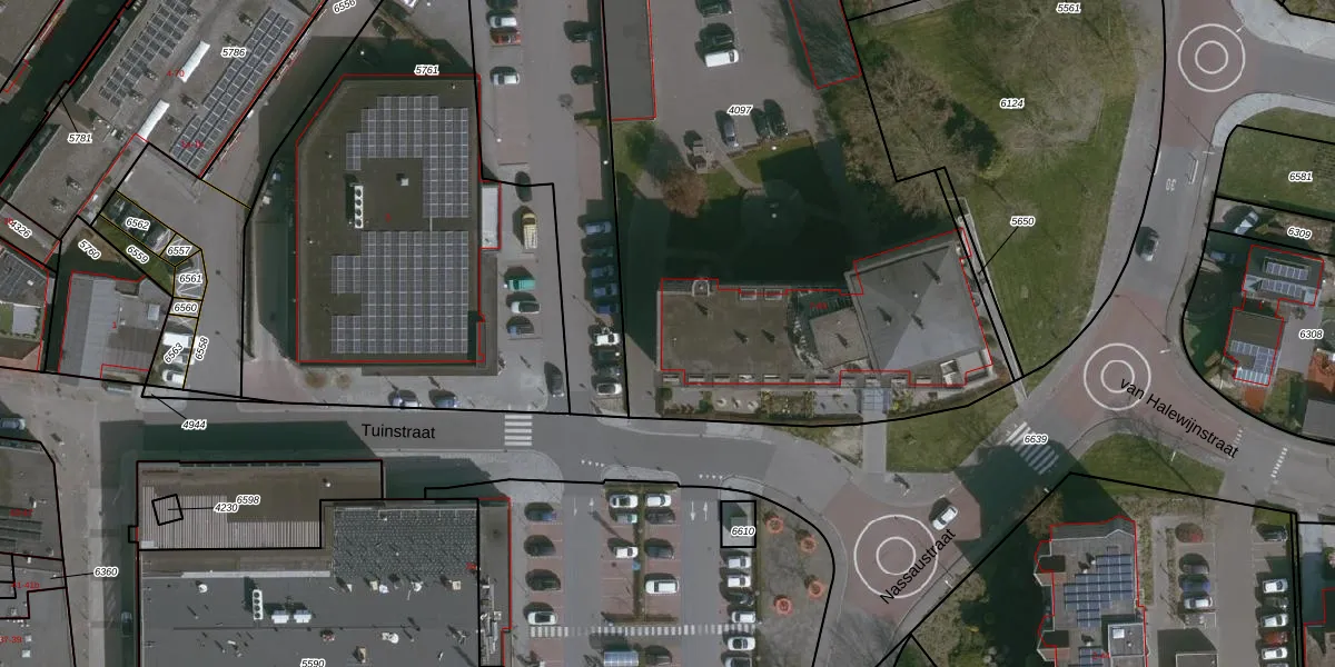 Het perceel waarop Tuinstraat 65 staat heeft een oppervlakte van 4037 m². Dit is een zeer groot perceel. De perceeloppervlakte wordt geregistreerd door het Kadaster. Gedetailleerde informatie over de maten van dit perceel kunt u vinden in het rapport Kadastrale kaart met maatvoering van Tuinstraat 65.