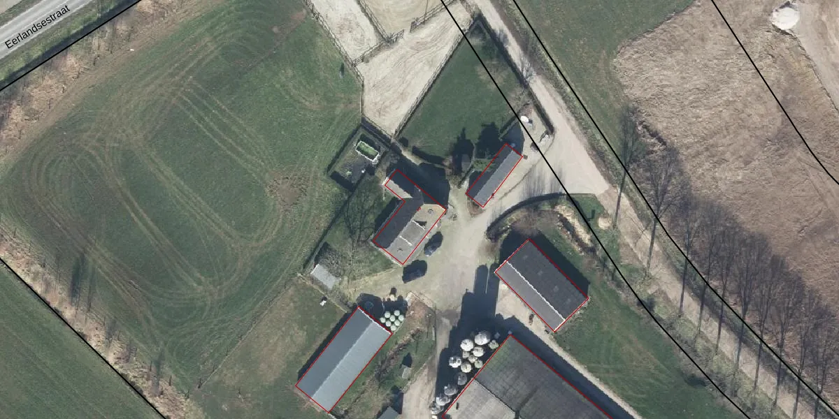 Het perceel waarop Maatweg 2 staat heeft een oppervlakte van 2,7 ha. Dit is een zeer groot perceel. De perceeloppervlakte wordt geregistreerd door het Kadaster. Gedetailleerde informatie over de maten van dit perceel kunt u vinden in het rapport Kadastrale kaart met maatvoering van Maatweg 2.