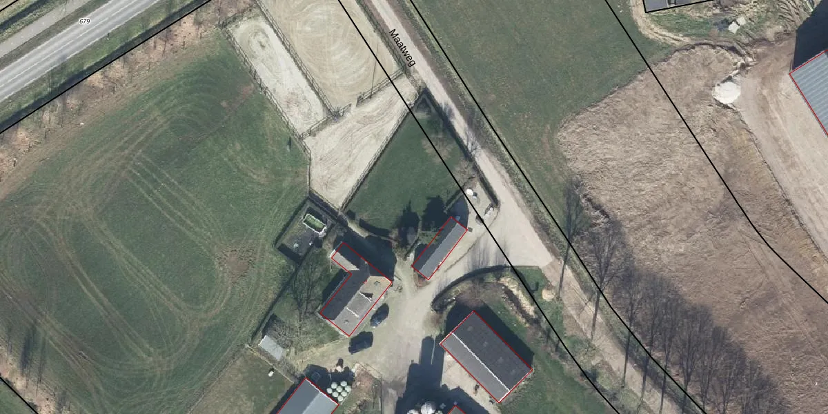Het perceel waarop Maatweg 2-a staat heeft een oppervlakte van 2,7 ha. Dit is een zeer groot perceel. De perceeloppervlakte wordt geregistreerd door het Kadaster. Gedetailleerde informatie over de maten van dit perceel kunt u vinden in het rapport Kadastrale kaart met maatvoering van Maatweg 2-a.