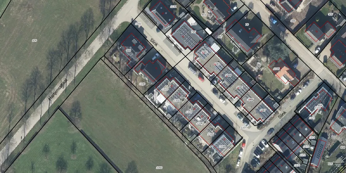 Het perceel waarop Slink 29 staat heeft een oppervlakte van 227 m². Dit is een middelgroot perceel. De perceeloppervlakte wordt geregistreerd door het Kadaster. Gedetailleerde informatie over de maten van dit perceel kunt u vinden in het rapport Kadastrale kaart met maatvoering van Slink 29.