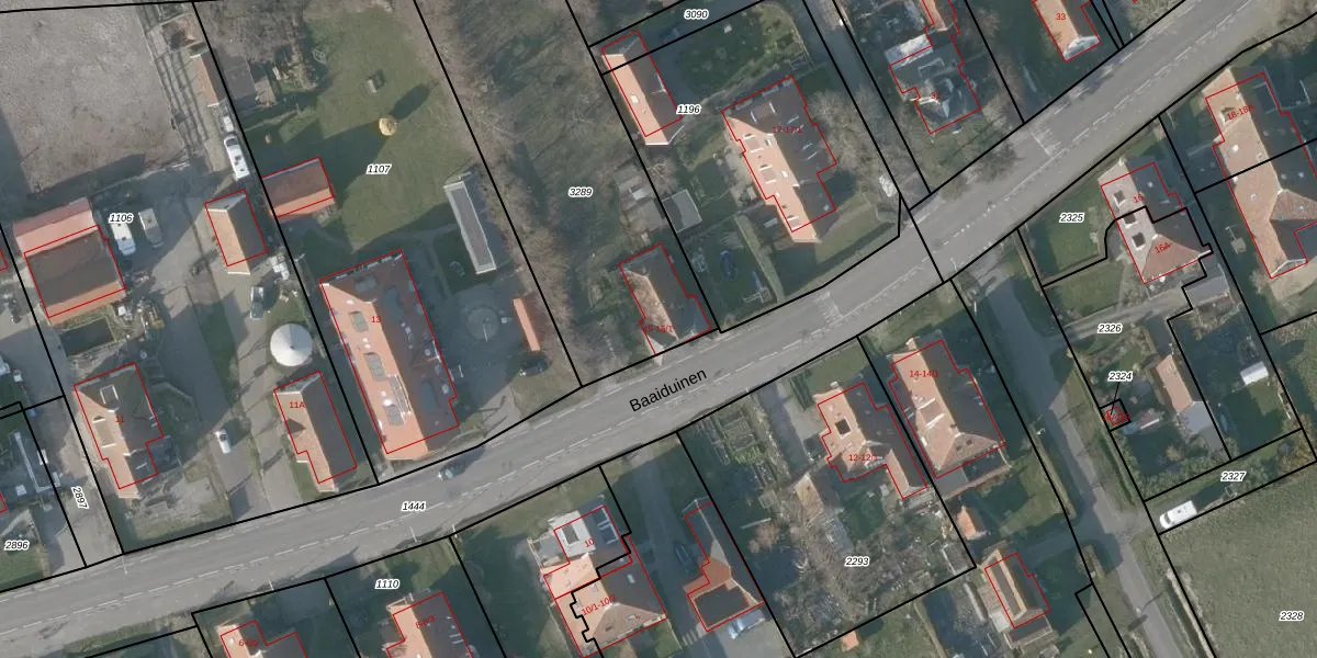 Het perceel waarop Baaiduinen 15 staat heeft een oppervlakte van 1505 m². Dit is een zeer groot perceel. De perceeloppervlakte wordt geregistreerd door het Kadaster. Gedetailleerde informatie over de maten van dit perceel kunt u vinden in het rapport Kadastrale kaart met maatvoering van Baaiduinen 15.
