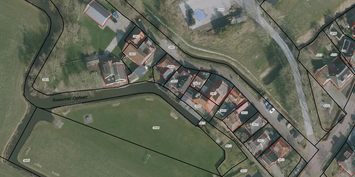 Buorren 13 is gelegen op kadastraal perceel BAA02A3905. Deze kadastrale aanduiding is uniek en wordt gebruikt door het Kadaster om eigendomsrechten en andere zakelijke rechten vast te leggen. Het perceel maakt onderdeel uit van de kadastrale gemeente Baard.