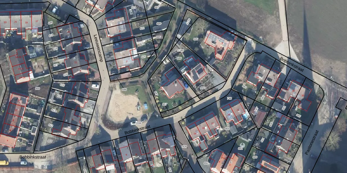 Het perceel waarop Bobbinkstraat 1 staat heeft een oppervlakte van 494 m². Dit is een groot perceel. De perceeloppervlakte wordt geregistreerd door het Kadaster. Gedetailleerde informatie over de maten van dit perceel kunt u vinden in het rapport Kadastrale kaart met maatvoering van Bobbinkstraat 1.