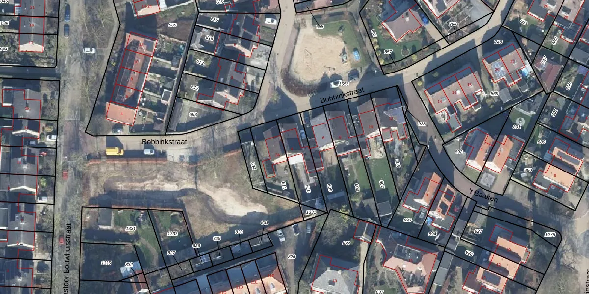 Het perceel waarop Bobbinkstraat 4 staat heeft een oppervlakte van 265 m². Dit is een middelgroot perceel. De perceeloppervlakte wordt geregistreerd door het Kadaster. Gedetailleerde informatie over de maten van dit perceel kunt u vinden in het rapport Kadastrale kaart met maatvoering van Bobbinkstraat 4.