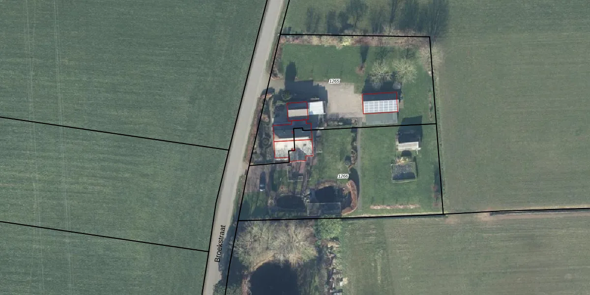 Het perceel waarop Broekstraat 5-A staat heeft een oppervlakte van 1870 m². Dit is een zeer groot perceel. De perceeloppervlakte wordt geregistreerd door het Kadaster. Gedetailleerde informatie over de maten van dit perceel kunt u vinden in het rapport Kadastrale kaart met maatvoering van Broekstraat 5-A.