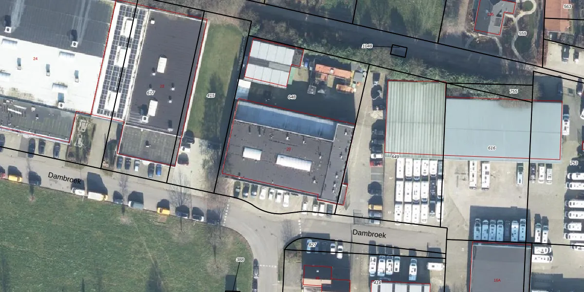 Dambroek 20 is gelegen op kadastraal perceel SDR00W648. Deze kadastrale aanduiding is uniek en wordt gebruikt door het Kadaster om eigendomsrechten en andere zakelijke rechten vast te leggen. Het perceel maakt onderdeel uit van de kadastrale gemeente Steenderen.