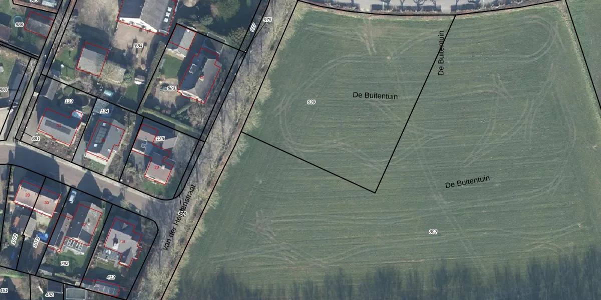 Het perceel waarop De Buitentuin 20 staat heeft een oppervlakte van 2730 m². Dit is een zeer groot perceel. De perceeloppervlakte wordt geregistreerd door het Kadaster. Gedetailleerde informatie over de maten van dit perceel kunt u vinden in het rapport Kadastrale kaart met maatvoering van De Buitentuin 20.