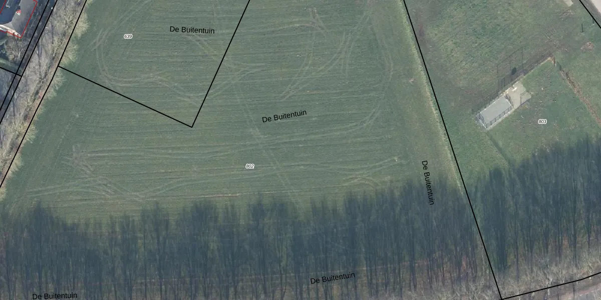 Het perceel waarop De Buitentuin 35 staat heeft een oppervlakte van 1,5 ha. Dit is een zeer groot perceel. De perceeloppervlakte wordt geregistreerd door het Kadaster. Gedetailleerde informatie over de maten van dit perceel kunt u vinden in het rapport Kadastrale kaart met maatvoering van De Buitentuin 35.